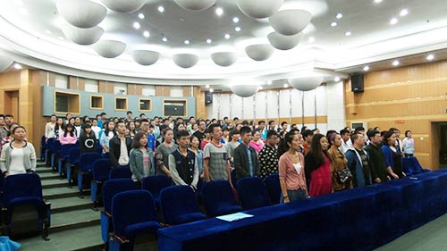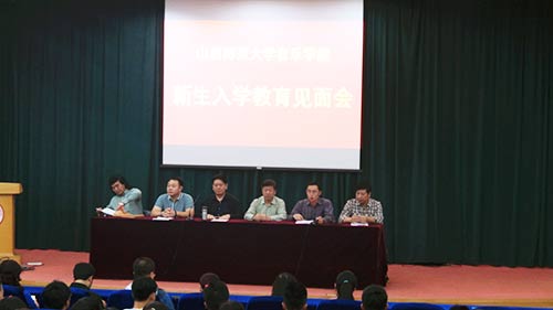 9月14日下午3:00,2026世界杯官网2014级新生见面暨入学教育动员大会在科学会堂二层报告厅举行。2026世界杯官网党委书记杨金山、院长孙鸣、党委副书记潘勋科、副院长张建强、史其威、刘明星,团委书记雷晶、声乐歌剧系主任韩再红、民乐系主任曹晓磊、管弦系主任解晓瑞,2014级新生辅导员成燕、秦滨及全体新生参加了动员会。新生入学教育动员大会由院党委副书记潘勋科主持。