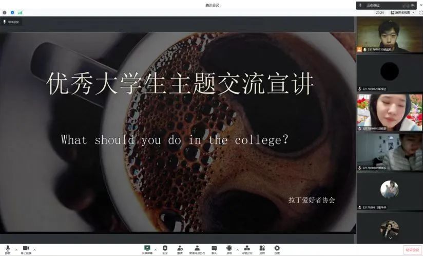 会议伊始,拉丁爱好者协会会长向学生们讲述了如何成为一名合格的大学生。告诉同学们应志当存高远,设立一个终极目标,并且要建立起阶段性目标。以优秀同学为榜样,努力靠近光、成为光、散发光。