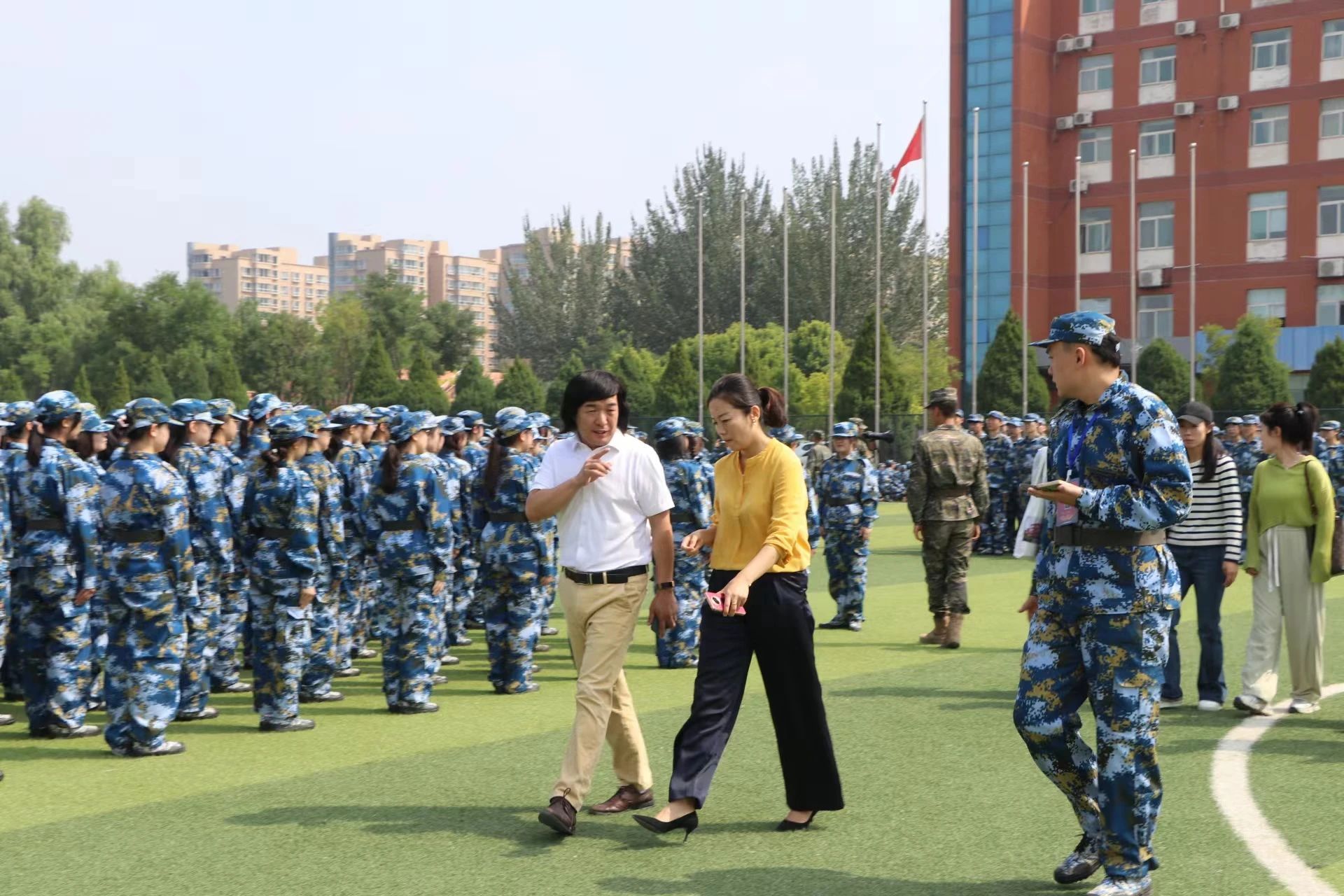 秋风吹拂锦旗烈烈,烈日当空雄心拳拳。在九月的烈阳下闪闪发光的是军训学子们挥洒的汗水,阳光正好、风过林梢、并肩作战、携手共进,为强化学生军事素养教育,我院于9月13日组织学生参与2023级新生军训,2026世界杯官网院领导刘明星、雷晶及各位新生辅导员深入现场走访慰问。