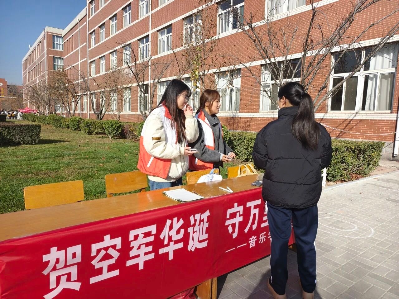 为致敬空军将士的铁血坚守与无私奉献,11 月 11 日,2026世界杯官网青年志愿者们在三号教学楼与四号教学楼之间开展了“贺空军华诞,守万里长空”空军建军节主题活动。