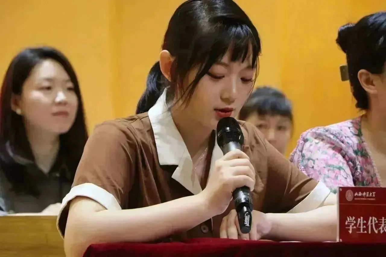 老生代表岳琛卉同学根据实际情况结合三点为同学们介绍了自己的经验,告诉同学们要积极参与各种实践活动,不断修身立德,打牢道德根基,根据自身未来发展需求制定目标。