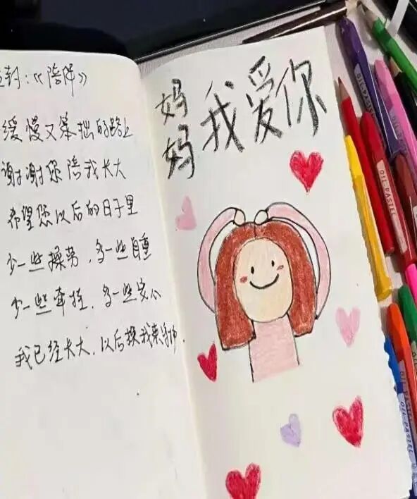 此次活动通过“时光对话”的形式,引导同学们回顾与母亲相处的温暖片段,在手写书信中,倾诉感恩、分享生活,并通过手绘插图等创意元素,为信件注入个性化温度。 一句句质朴的告白,不仅让母亲感受到子女的成长与关怀,更让同学们在书写过程中重新丈量母爱的厚度。