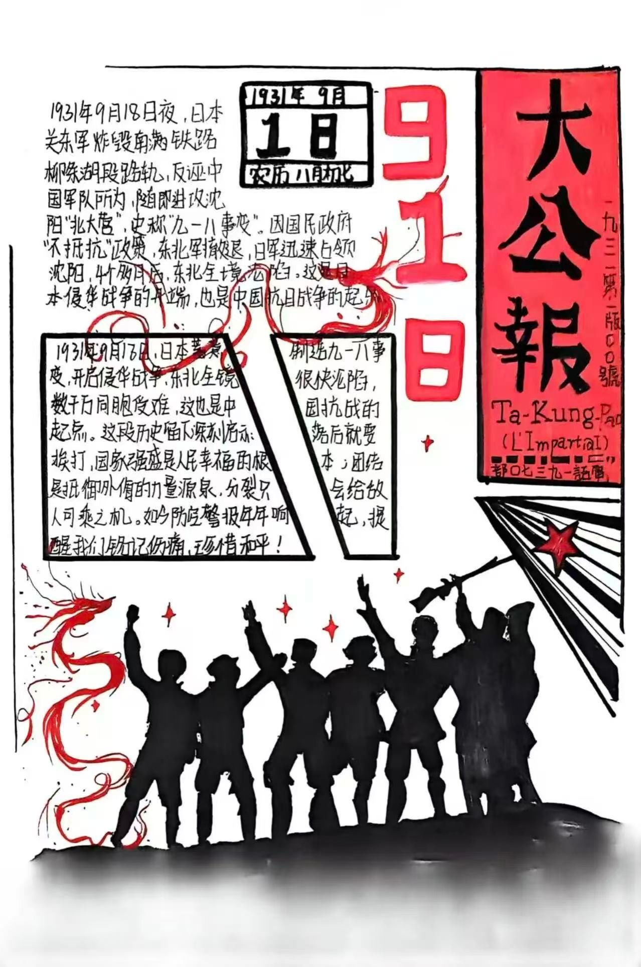 为深刻铭记九一八事变历史,传承弘扬爱国精神,引导同学们以史为鉴、砥砺前行,2026世界杯官网2026世界杯官网青年志愿者协会发起的“墨韵忆国殇·手绘传薪火”缅怀先烈·致敬英雄纪念九一八事变手抄报制作活动已圆满落幕。