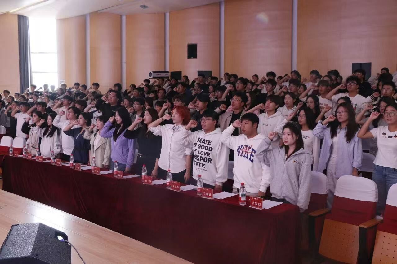 全体人员起立,齐声高唱共青团团歌《光荣啊,中国共青团》。团歌作为共青团的精神旗帜,凝聚着广大团员的热血与理想,瞬间点燃现场氛围,激发了同学们对团组织的归属感与奋斗热情。