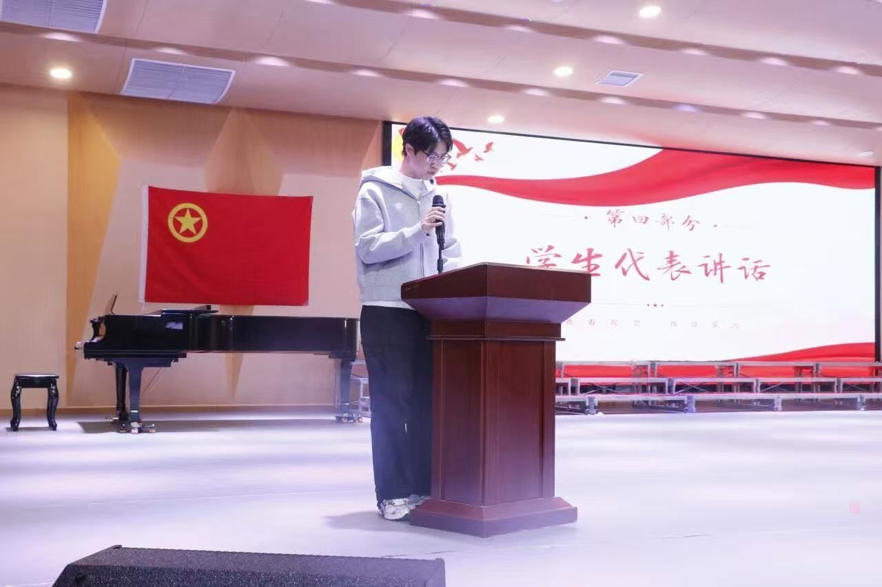 25级学生代表王琨皓围绕“坚定理想信念,践行青春使命”分享感悟,号召全体同学深学党的先进理论,厚植爱国情怀,积极投身实践锻炼,努力成长为“有理想、敢担当、能吃苦、肯奋斗”的新时代青年,为民族复兴贡献青春力量。