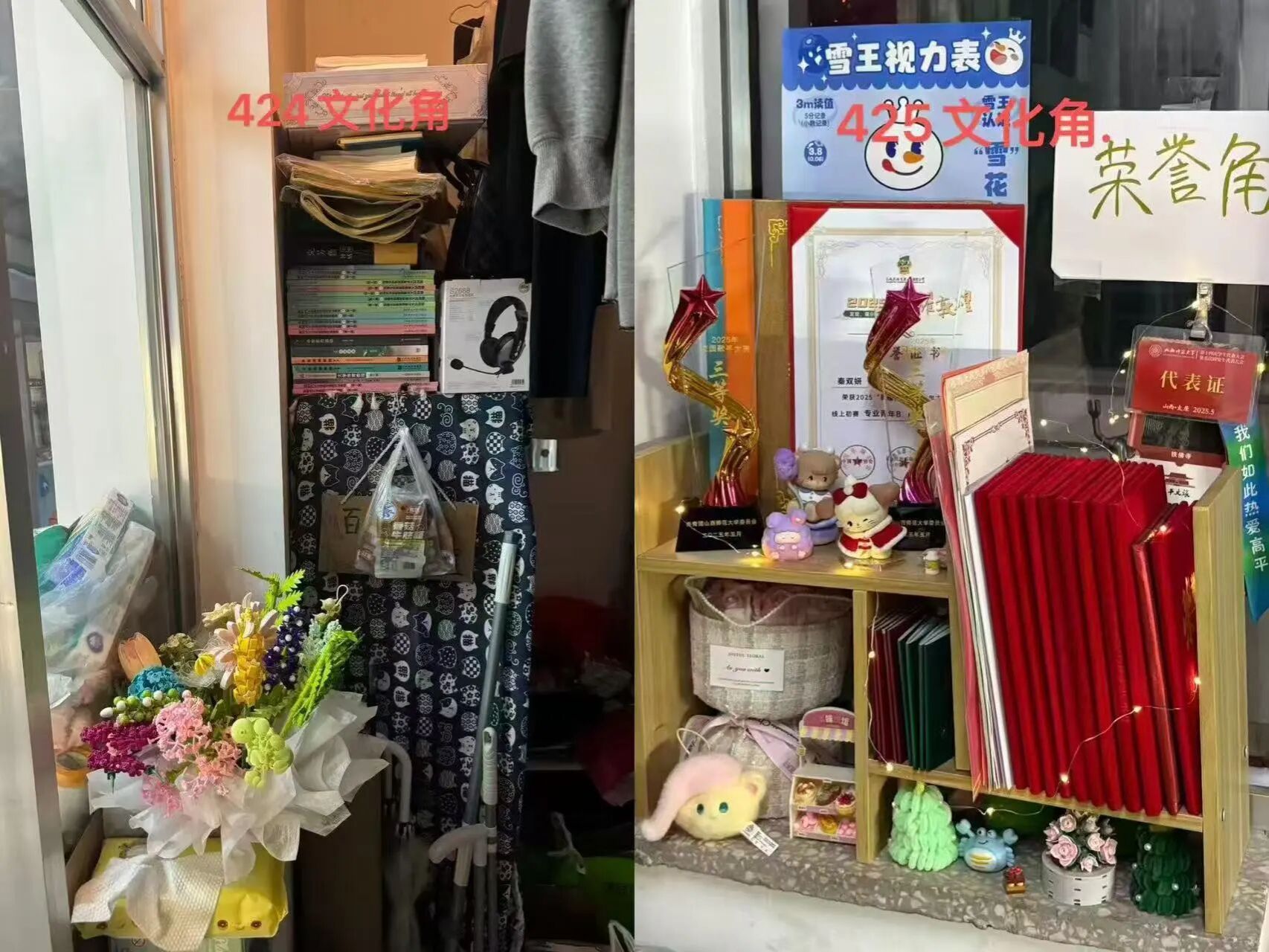 活动期间,各寝室成员分工协作,整理归置物品、清扫擦拭门窗以清除角落灰尘,创意寝室更以标语、绿植、合影打造“文化角”,满溢生活温度与青春气息。同时,工作人员进寝室开展“文明小课堂”,筑牢各寝文明安全防线。