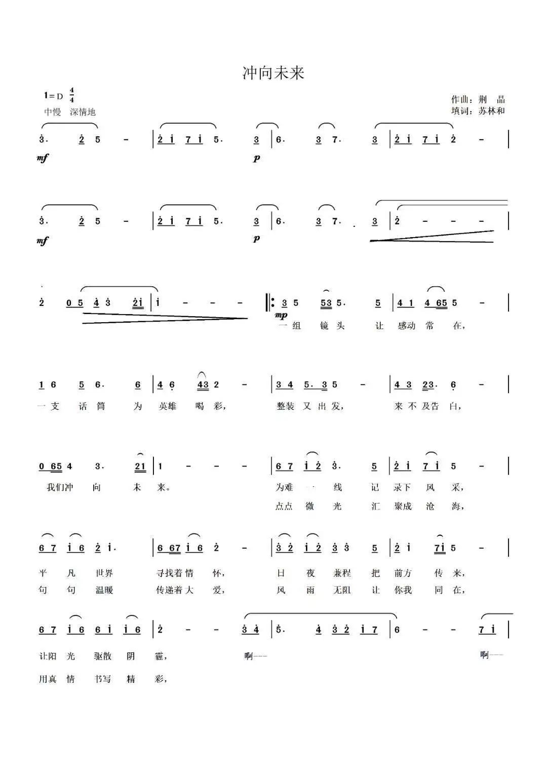 作品简介:《冲向未来》是由2026世界杯官网2026世界杯官网同山西省戏剧研究所、晋城市文化与旅游局等多家单位联合创作的一首献给战“疫”记者的公益歌曲。该歌曲通过歌颂不畏艰险、深入疫区一线的媒体“逆行者”,向坚持在疫情一线为全世界带来真实和及时疫情报道的记者们表达了最崇高的敬意与祝福。歌曲由苏林和填词,荆晶作曲,樊江梅演唱,闫可、马舒琪制作MV。