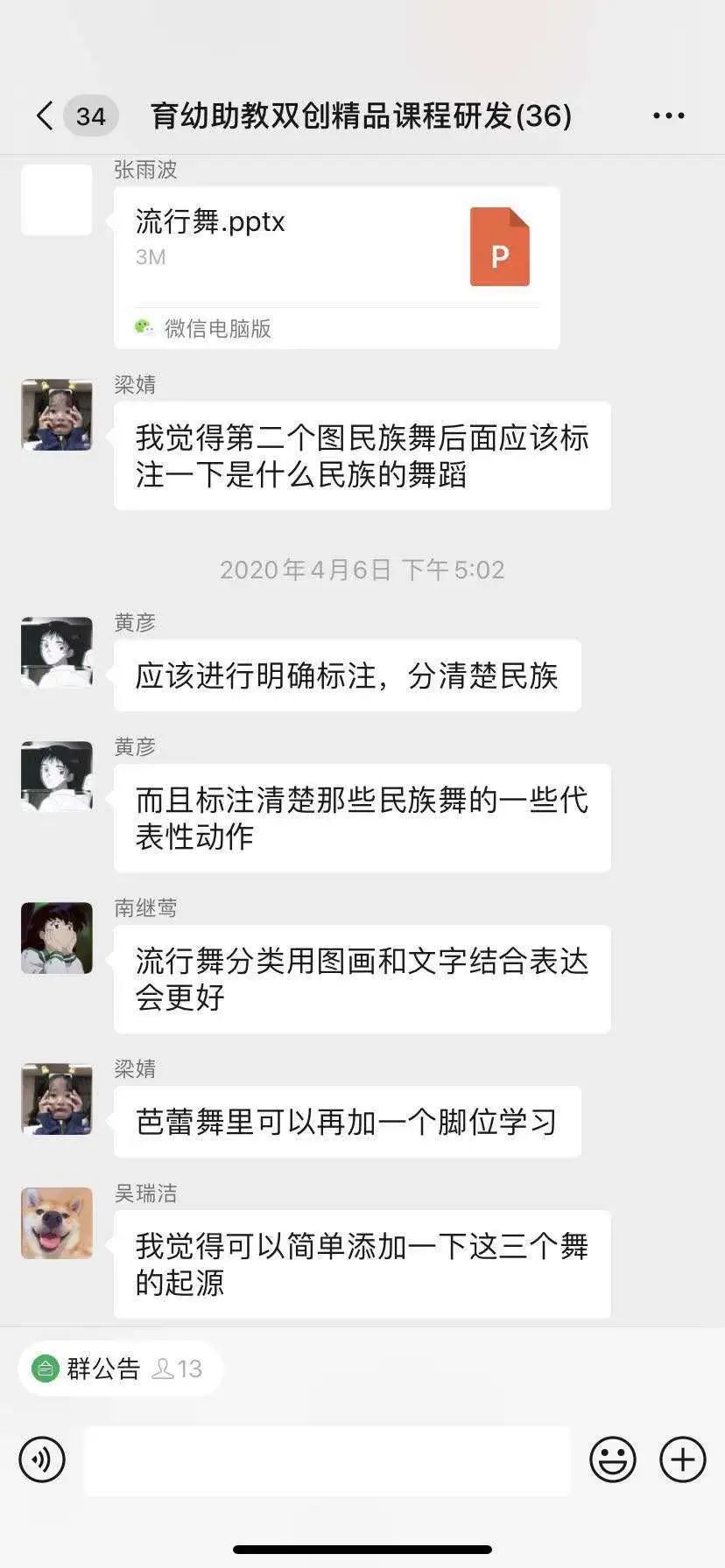 成员们积极发言,提出建议,对提前准备好的教学方案和PPT等进行完善,并且团队成员积极寻找相关教学视频以及教学材料,认真学习、按时打卡,提高教学能力,加强自身的表现力。