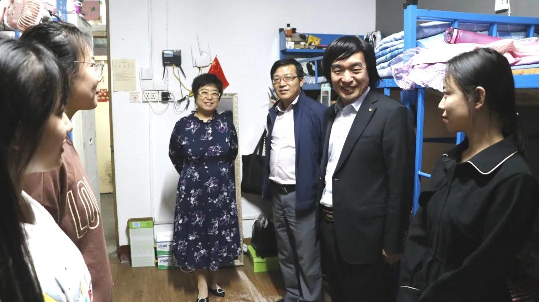 晚上,院领导走访宿舍看望学生,不仅为同学们送去节日的问候,并关切地询问他们在学习、生活方面的情况,使他们感到无尽的温暖。同学们也表示虽然不能与家人共度佳节,但有学院的关怀和同学的温馨互助让他们度过了一个难忘的中秋节和国庆节。