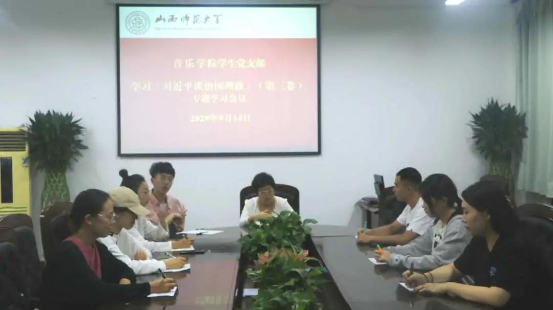 9月14日下午,学生党支部召开学习《习近平谈治国理政》第三卷专题学习会,全体学生党员参加会议,党支部书记席振萍主持会议。