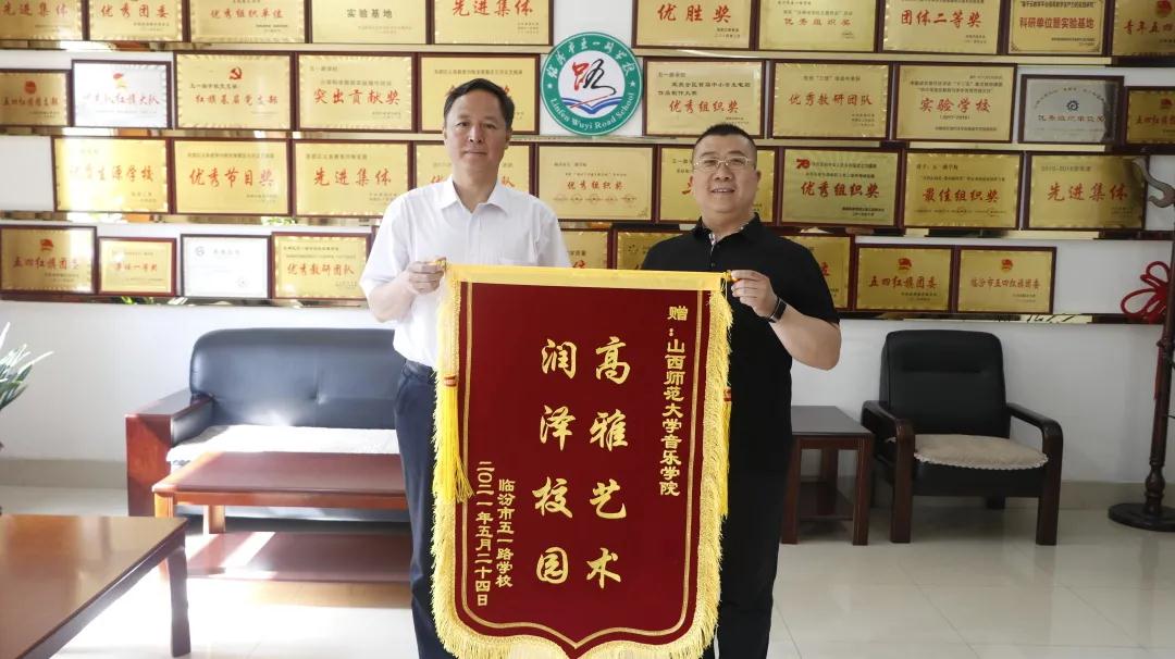 演出结束后,曹老师应邀前往校长办公室洽谈,五一路学校高层领导对于巡演团的到来再次表示感谢,向我院赠送“高雅艺术 润泽校园”的锦旗,校方表示希望能够加强交流与合作,在之后的合作中共同进步。