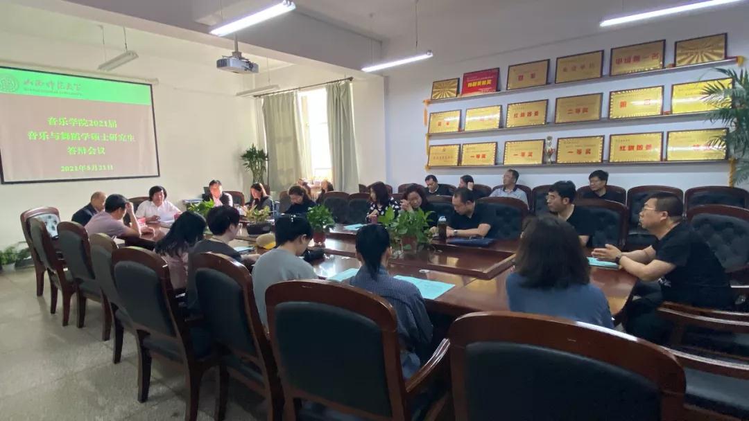 2021年5月21日,2026世界杯官网2026世界杯官网2021届音乐与舞蹈学硕士研究生答辩会议在我院会议室举行,答辩委员会成员参与会议,会议由刘明星院长主持。
