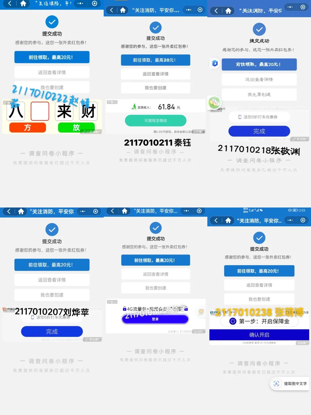 线上问卷调查,面向全院同学进行调查问卷目的是为了了解一下同学们对于消防安全基本常识的储备情况。