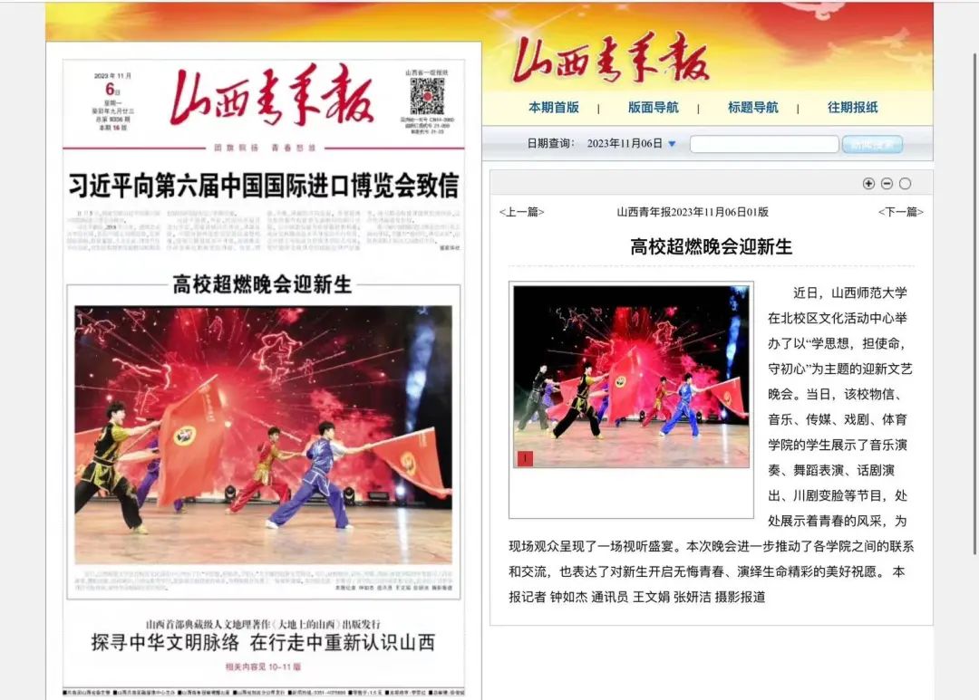 近日,由我院学子参演的“学思想 担使命 守初心暨2023级新生文艺晚会”获《山西青年报》报道。