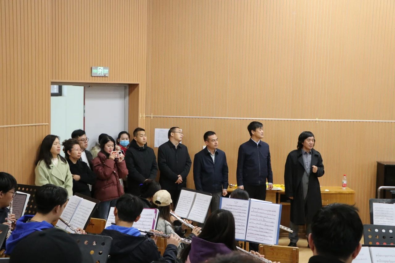 会议开始前,刘明星院长带领双方全体参会人员参观了我院音乐厅、排练厅、琴房等基础设施,并同双方参会人员共同聆听了我院管弦乐团和民乐团的排练情况。