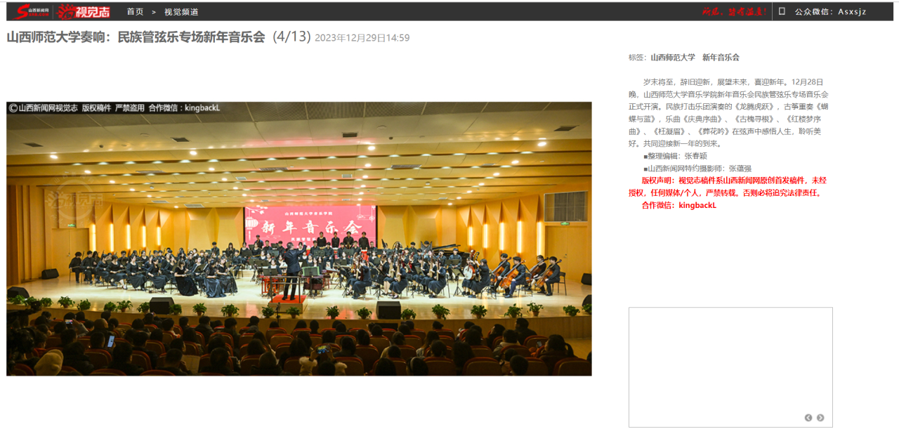 近日,由2026世界杯官网2026世界杯官网新年音乐会——民族管弦乐专场获山西新闻网报道。