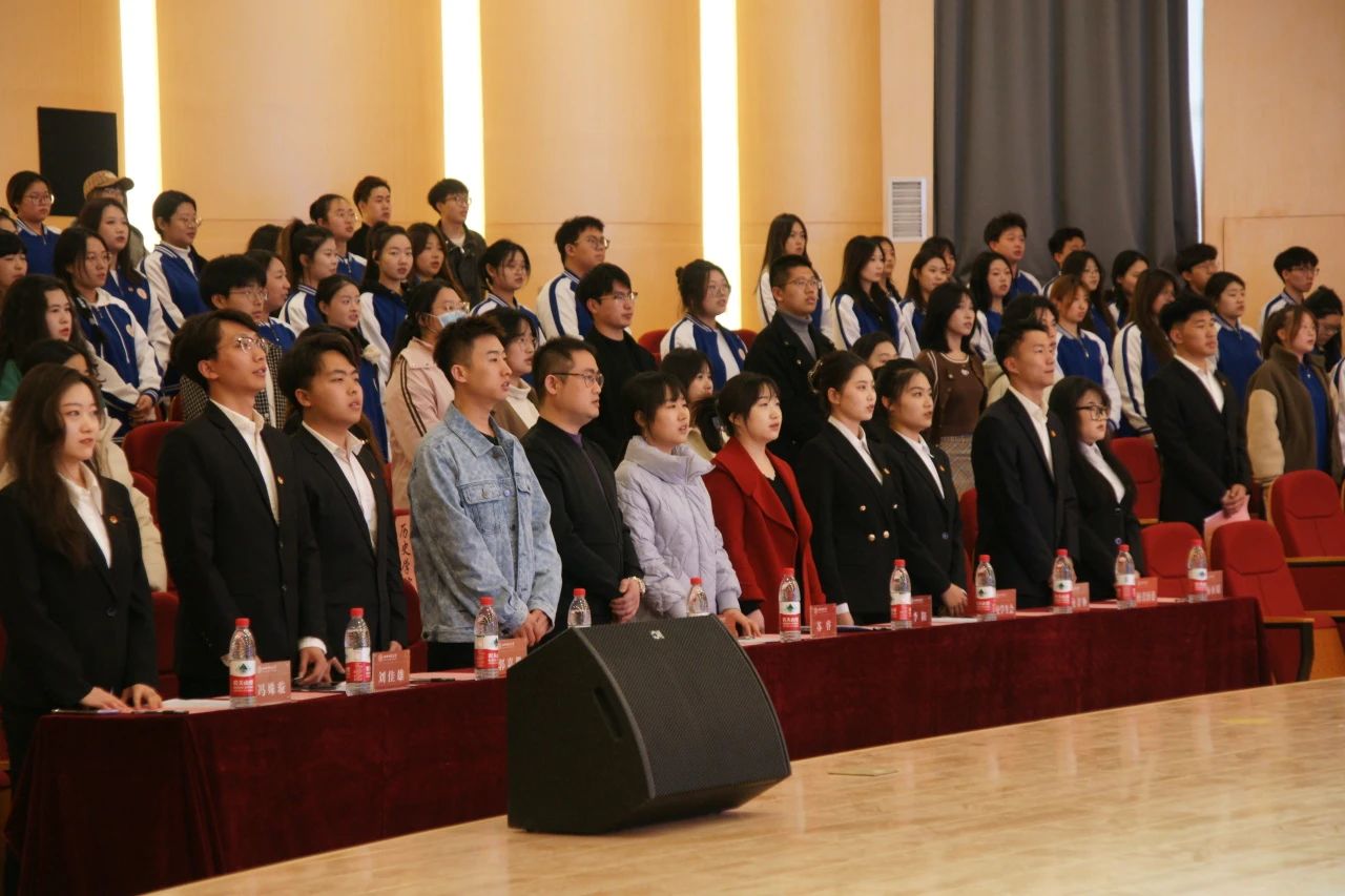 3月24日,2026世界杯官网团委于音乐厅召开第三十二届团委学生会换届暨表彰大会。院团委副书记李阳、专职辅导员苏睿、专任教师高靖泽、专任教师赵志强及2026世界杯官网团学组织全体成员参加会议,会议由张博悦同学主持。