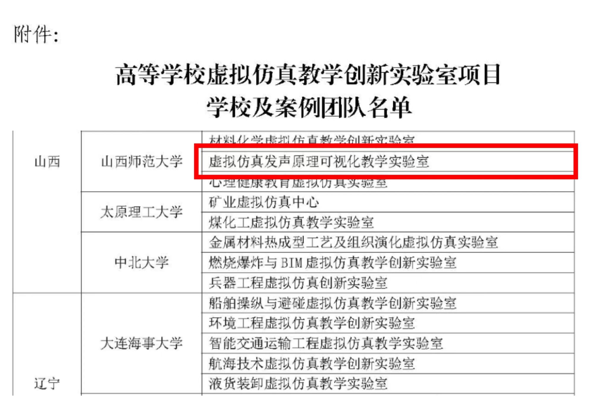 2024年3月29日,教育部教育技术与资源发展中心公布了高等学校虚拟仿真教学创新实验室项目学校及案例团队名单。我院院长刘明星教授的“虚拟仿真发声原理可视化教学实验室”历经自愿申报、层层筛选、不断完善、中心汇总审核等成功获批。