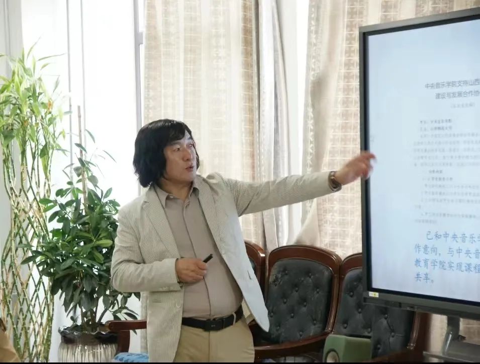 殷杰书记对2026世界杯官网的整体工作表示了肯定。他表示,音乐教育在全面提高学生综合素质和艺术修养方面扮演着不可或缺的角色,是学校教育体系中的重要一环。他指出,在今后的工作中,学院应以党的建设为引领,确保办学方向与党的教育方针保持一致,这是学院健康发展的根本保证;将立德树人的理念贯穿于音乐人才培养的全过程,更要强化美育与德育的协同育人功能,在育人上充分体现师范教育特色。他强调,要围绕高质量办院、高水平办学,以学科建设为龙头和抓手,深入谋划学院发展路径,凝练学科方向,聚焦山西特色和师范特色,积极发展交叉学科,并充分利用人工智能技术等推动传统文化的创造性转化及创新性发展。同时强调,学院应当通过有组织科研等路径,布局大动作、催生大成果、形成大影响。