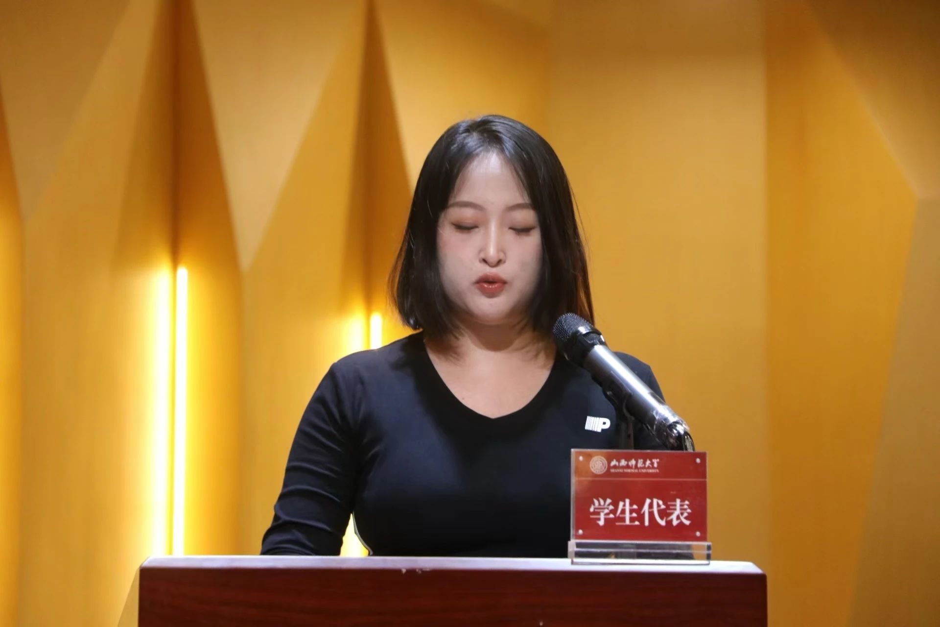 院党委书记雷晶勉励同学们勤奋学习,不断提高自己的专业水平,树立远大理想,以音乐为媒介,为推动学院的进步和发展贡献自己的一份力量,同时希望同学们遵守学校的各项规章制度,做到言行一致,表里如一。