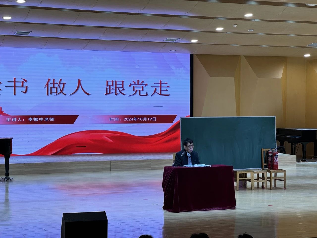 讲座中,李振中老师围绕“为何读书,如何读书,怎么读书”这三个关键问题,深入浅出地阐释了读书的重要性,并以生动的语言,详细讲述了党在建国历程中的英勇事迹,党全心全意为人民服务的精神如同一座巍峨的丰碑,令同学们为之动容、心生敬佩。李振中老师深情寄语青年学子,作为党的接班人,在新时代要笃学不倦,锤炼品德,勇于创新,赤心向党。