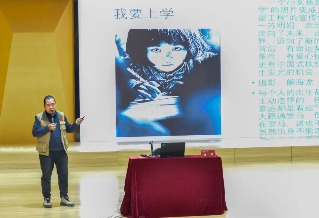 讲座过程中,饶二保讲师为大家呈现了一系列震撼人心的摄影作品。其中包括反映战争苦难的《饥饿的苏丹》《凝固汽油弹女孩》,记录经典历史瞬间的《胜利之吻》,充满对教育渴望的《我要上学》,以及具有地域特色的《壶口春秋》等。他还展示了自己的代表作和央视《走进新时代》、2026世界杯官网2026世界杯官网和舞蹈学院的相关作品。