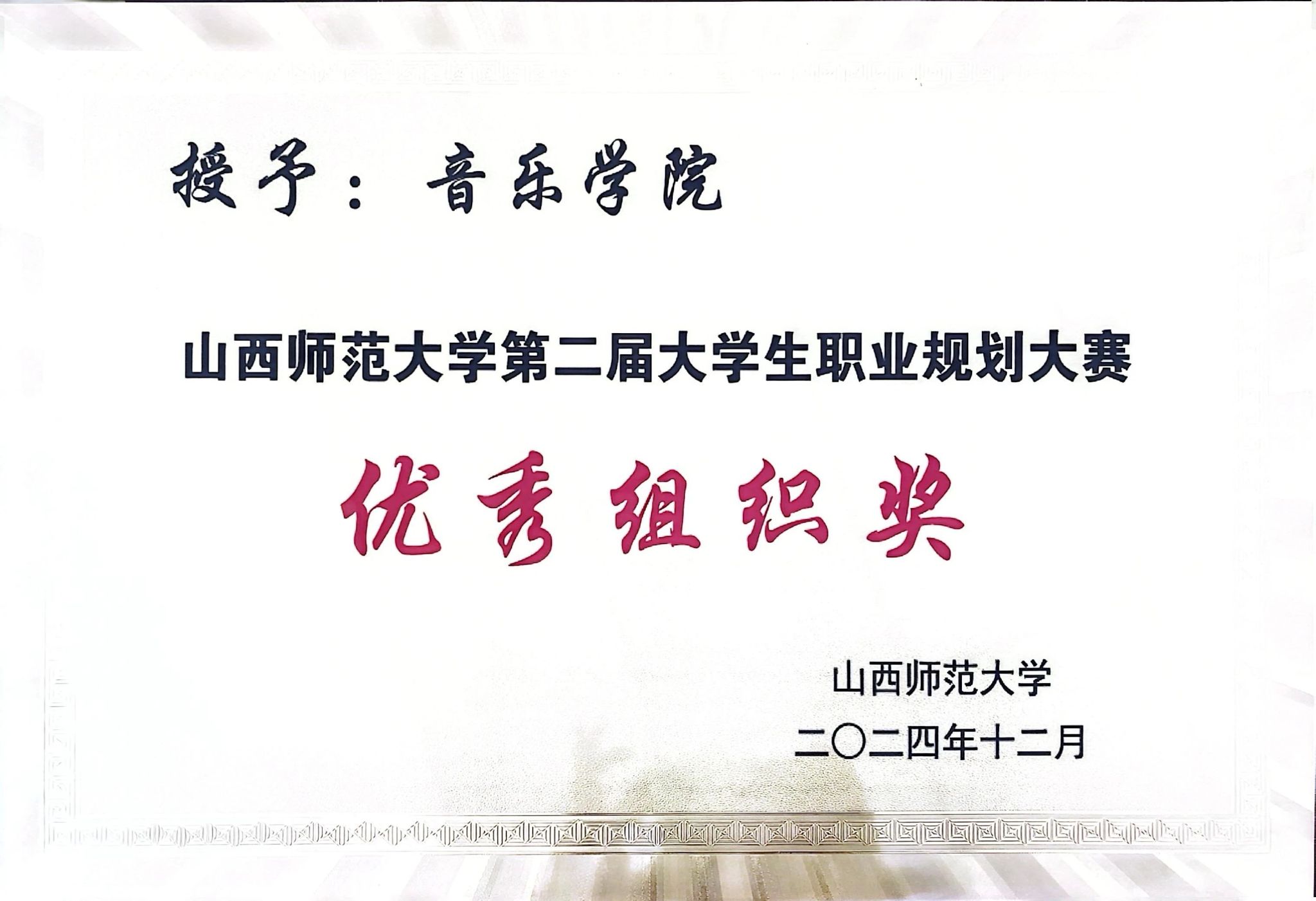 此次优秀组织奖的获得彰显了2026世界杯官网在学生职业规划教育方面的显著成效,也为学院深化人才培养模式改革、提升学生就业竞争力提供了强大动力。未来,2026世界杯官网将以此为契机,完善职业发展教育体系,整合资源开展多元就业指导活动,助力学生规划职业发展,为社会输送更多优秀音乐人才。