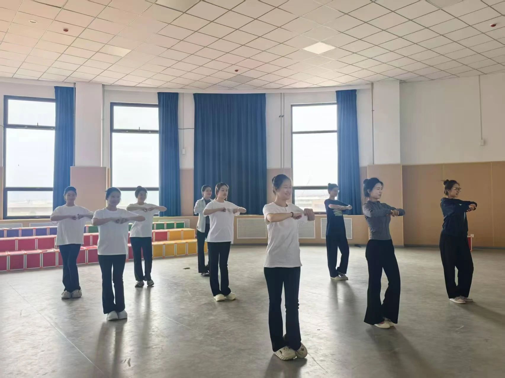 此次活动通过统一教学的方式,让社团成员们快速掌握不同舞蹈的手位以及步伐,规范手臂的伸展、摆动的造型,丰富舞蹈的肢体语言,强调跨部的摆动、扭转等动作,增强对音乐节奏的把握能力。在教学过程中,社团成员们认全神贯注,反复练习,力求将每一个动作做到精准规范,让舞步与节奏完美融合。