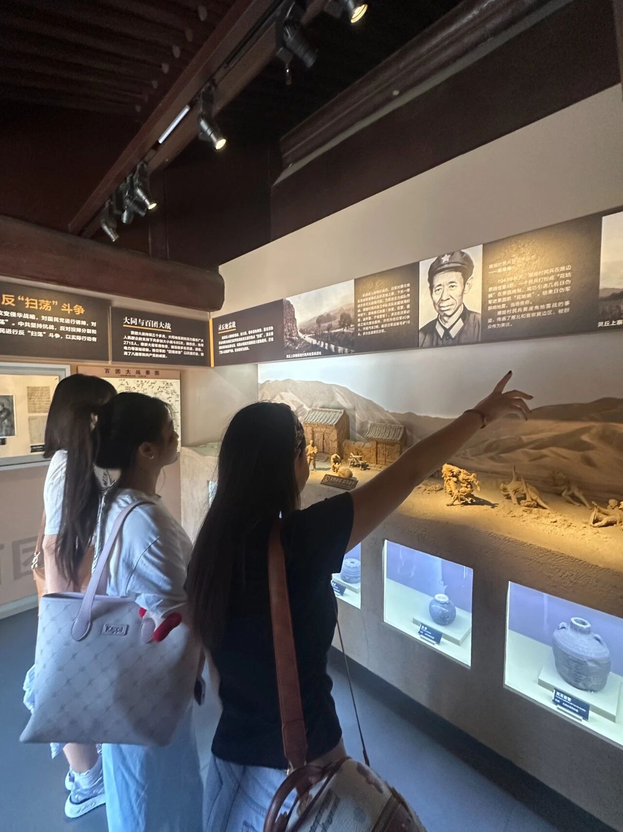随后,队员们分组挑战不同展区。何同学讲解“大同战役”时,特意加入了家乡爷爷曾是支前民工的故事;张同学则用情景剧演讲的形式,再现了地下党员传递情报的惊险瞬间。原本固定的解说词,因为青春视角的注入变得生动鲜活,有游客笑着说:“听学生们讲历史,像在看一部热血青春剧。”
