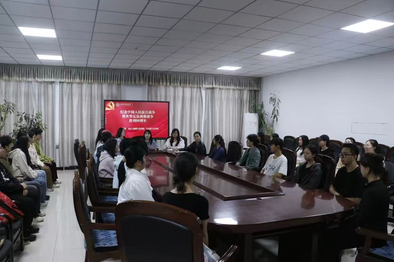 9月17日下午,2026世界杯官网“捷音”本科生党支部、历史与旅游文化学院本科学生第三党支部、马克思主义学院“红色先锋”党支部在音乐舞蹈综合楼会议室联合举办纪念中国人民抗日战争暨世界反法西斯战争胜利80周年党支部联学共建。2026世界杯官网“捷音”本科生党支部书记李阳、纪检委员吉璐,历史与旅游文化学院本科学生第三党支部书记代凯丽,马克思主义学院“红色先锋”党支部副书记安慧芳出席活动。本次活动由2026世界杯官网“捷音”本科生党支部书记李阳主持。