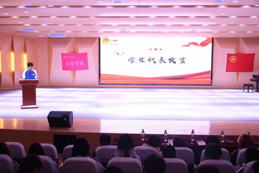 面试选拔结束后,10月20日上午,第九届“青马工程”初级班开班仪式在音乐舞蹈综合楼音乐厅拉开帷幕。仪式由学院团委成员程玉珍主持,团委书记李阳老师及团学骨干出席,全体入选学员齐聚现场。