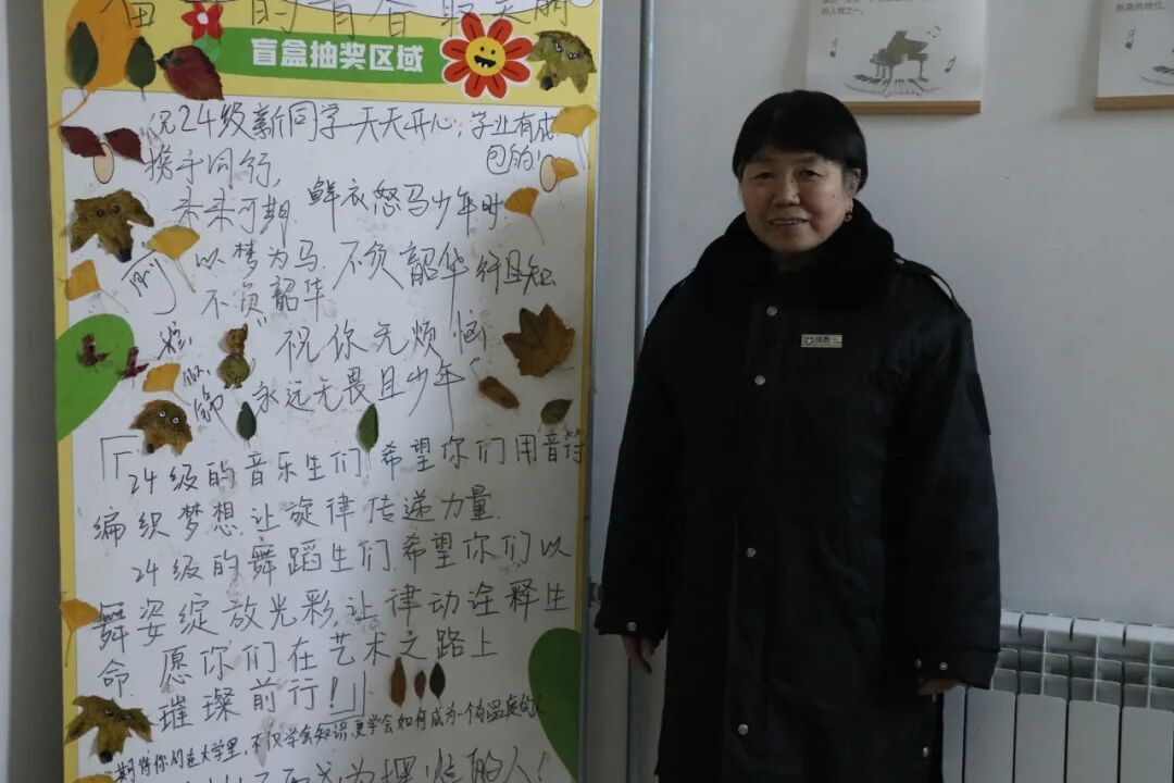 “特别是到了咱们楼,天天听着悦耳的乐器声,看着婀娜的舞蹈,还有此起彼伏的歌声……在陶醉里工作,美哉美哉!”学生举着手机对着树叶贴画拍照时,白大姐总偷偷乐 “能给大家带来快乐,是我们的荣幸嘛。”这哪是楼管的日常啊?是有人把普普通通的日子,都裹上了乐声与落叶的温柔呀。