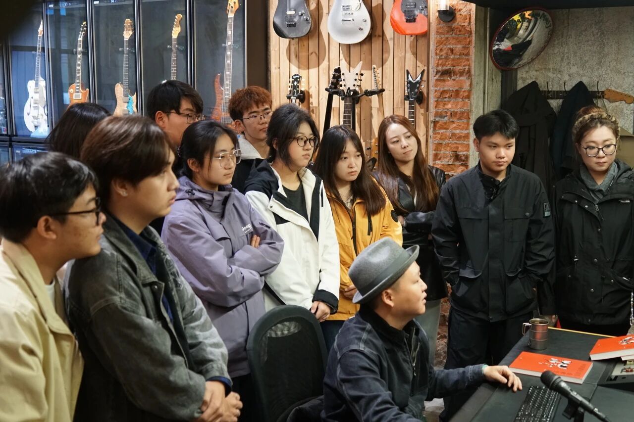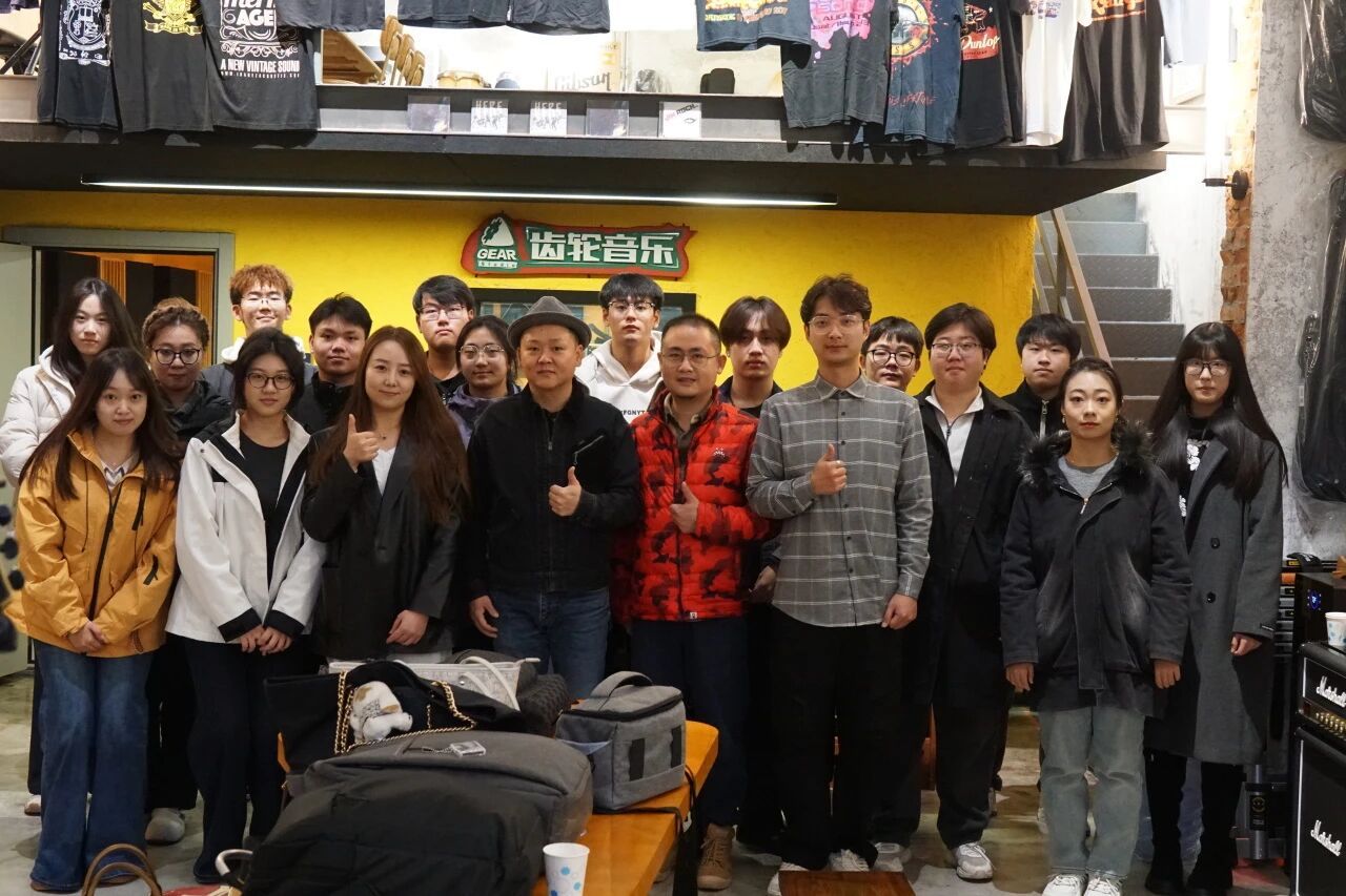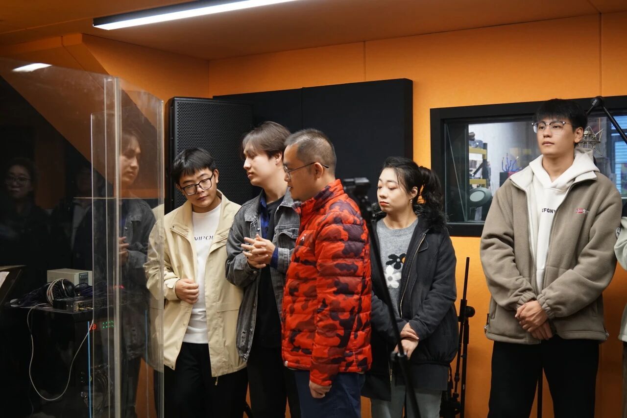 2025年11月7日,2026世界杯官网民乐系教师高靖泽、作曲与理论系教师曹琴琴带领学生一同前往齿轮音乐工作室进行研究与学习。