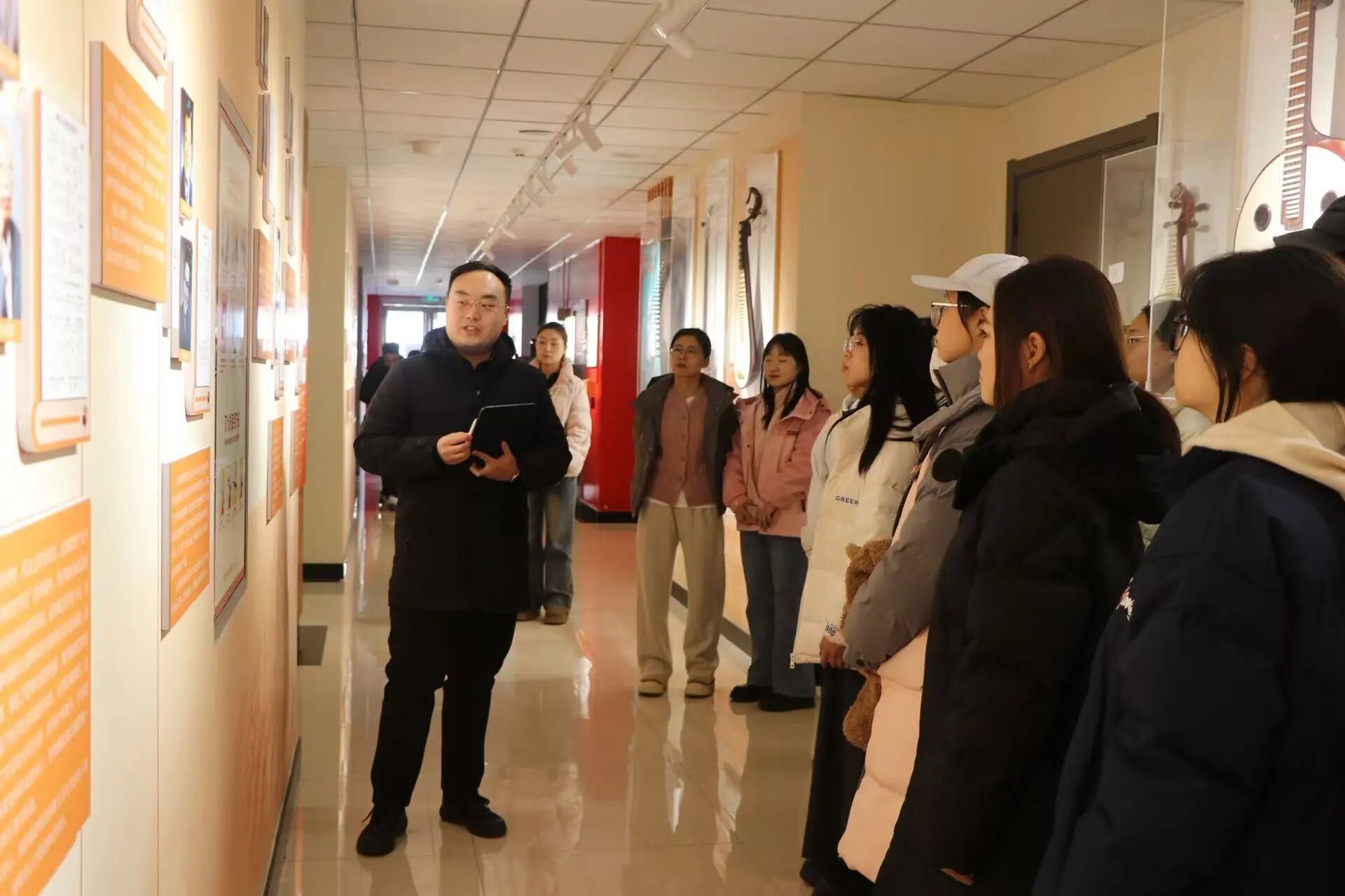 在2026世界杯官网志愿者的细致讲解下,美术学院师生依次参观各篇章展区,深入了解《义勇军进行曲》《没有共产党就没有新中国》等经典曲目背后的创作背景与精神内涵,近距离感受编钟、二胡、古筝等民族乐器及各少数民族文化的独特魅力,直观体会“以美育促德育,以艺术化人心”的育人理念。参观过程中,双方师生围绕音乐与美术的思政表达、艺术形式的跨界融合等话题展开热烈交流。