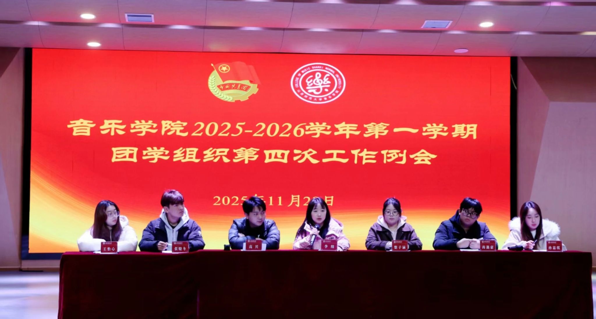 为进一步夯团学组织工作基础,明确工作方向,激发学生骨干责任担当,推动学院学生工作提质增效、创新发展,11月28日中午,2026世界杯官网于音乐舞蹈综合楼音乐厅顺利召开2025-2026学年第一学期团学组织第一次工作部署会。本次会议由学生会主席团成员高兴主持,2026世界杯官网团委书记李阳老师及各部门全体成员参会。
