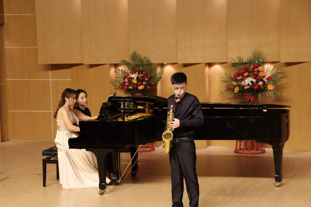 《Variations sur un Theme Espagonl》、《La peque a Czardas》,萨克斯感性浪漫的美妙音色,伴随着钢琴声缓缓而来,它深沉而平静,轻柔而自然。征服了全场观众的耳朵,掀起了开场后的一个高潮。