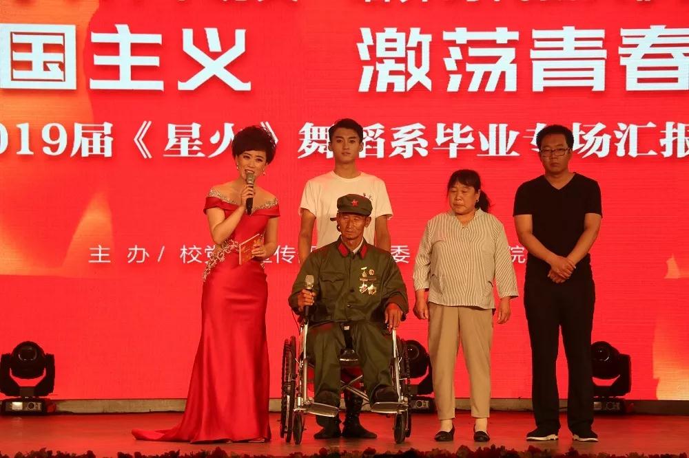 在晚会中还特别邀请到了对越自卫反击战战士曹明德,曹明德深情讲述了当年在战场中经历的事,并以朴实的话语和无比动人的情怀勉励青年学子,要牢记团结就是力量,要热爱祖国,多为国家、为民族做有意义的事情。