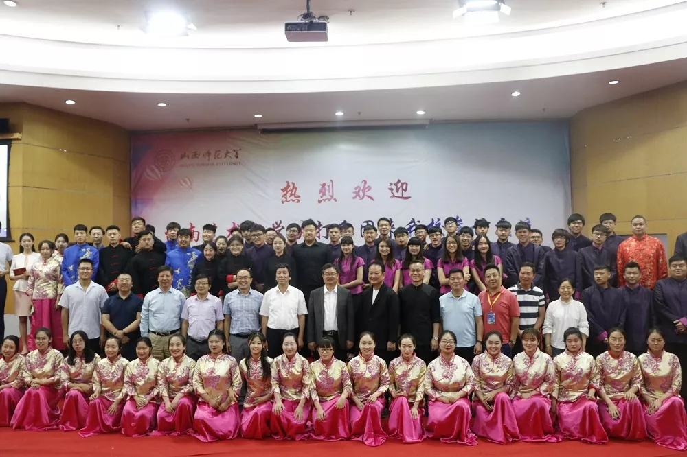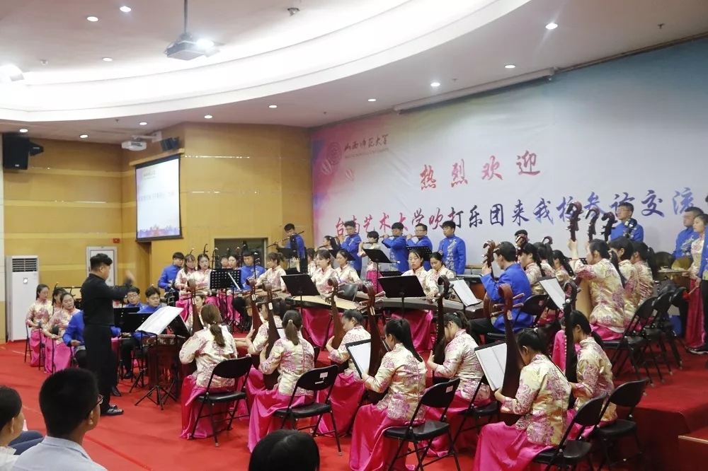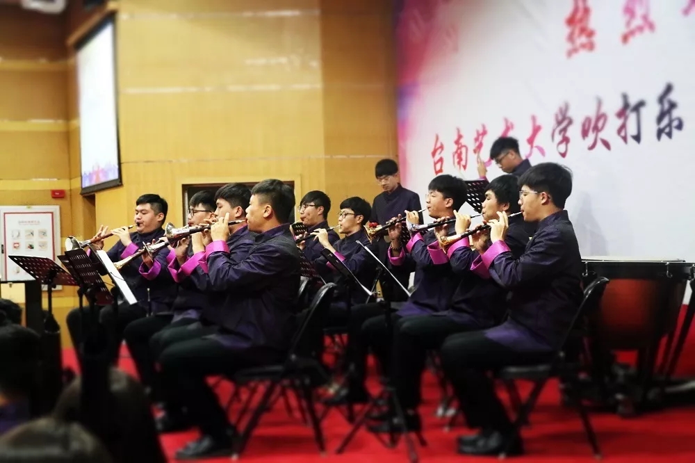 在欢迎仪式上,首先由我校2026世界杯官网民乐团带来民族管弦乐《印象国乐•大曲》,为观众呈现出一场精彩震撼的演出。接下来,校党委副书记高峰代表学校对台南艺术大学吹打乐团的来访表示热烈欢迎,省台办副主任宋英民希望两岸青年要以艺术为媒、以文化为介,推动两岸青年在交流活动中互学互鉴。台南艺术大学学务长施德华教授充分肯定了山西在历史文化上强大的感染力,他希望两岸的文化艺术交流能够不断持续下去,期待两校友谊长存,并预祝本次交流会圆满成功。