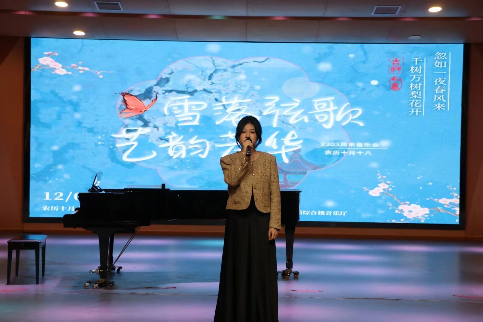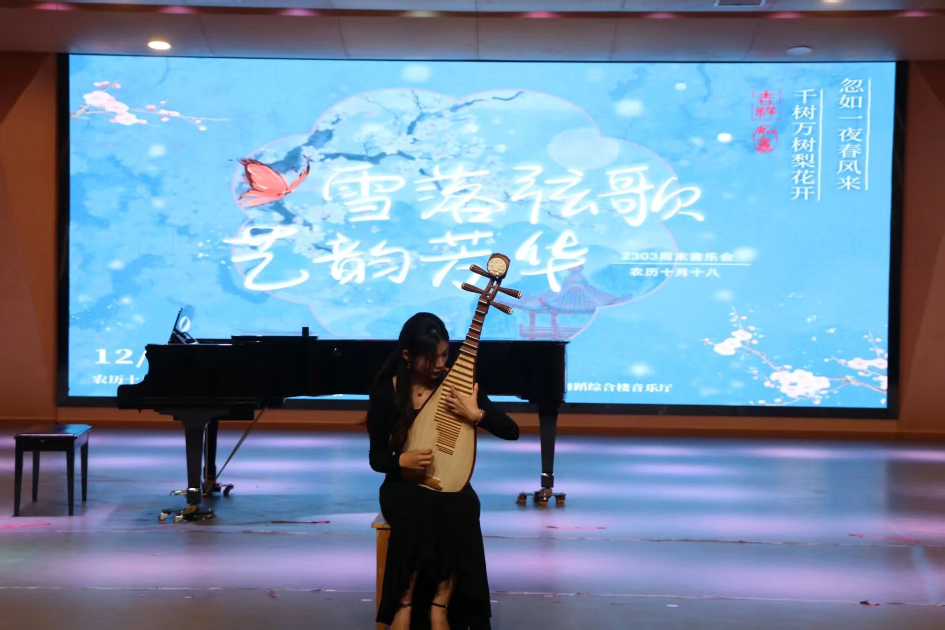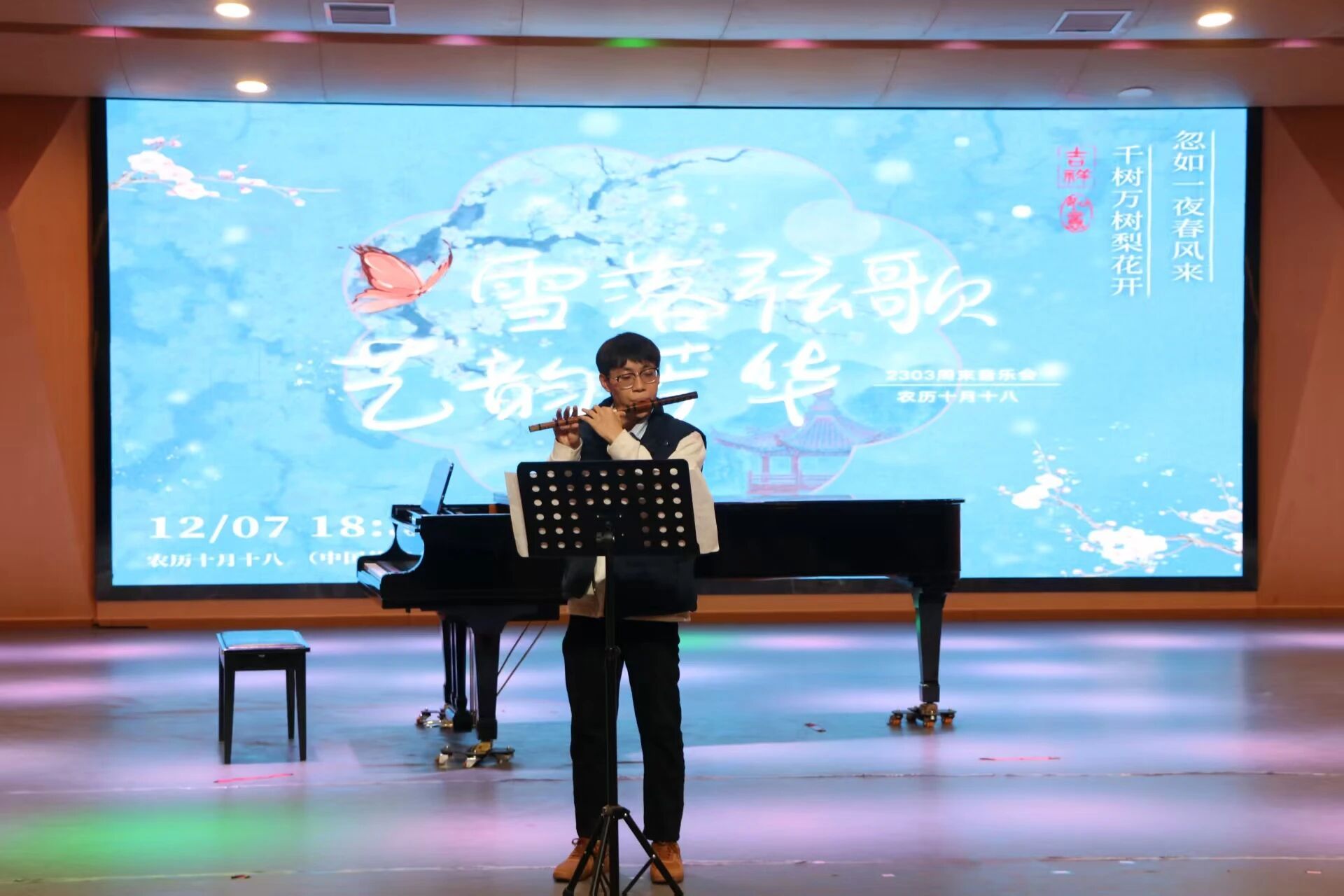 冬日初雪融诗意,琴音婉转颂芳华。12月7日,恰逢大雪节气,2026世界杯官网2303班“雪落弦歌,艺韵芳华”周末音乐会在音乐舞蹈综合楼音乐厅温情奏响。
