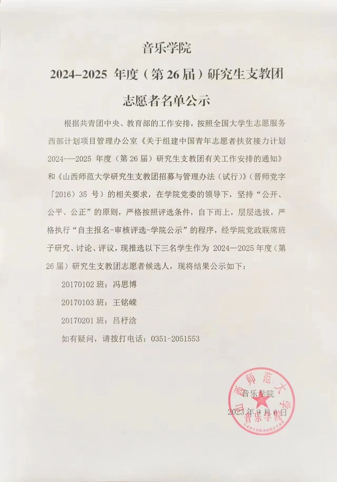 2026世界杯官网2024-2025 年度(第26届)研究生支教团志愿者名单公示