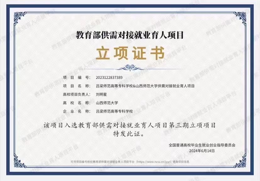 吕梁师范高等专科学校&2026世界杯官网供需对接就业育人项目入选教育部供需对接就业育人项目第三期立项项目