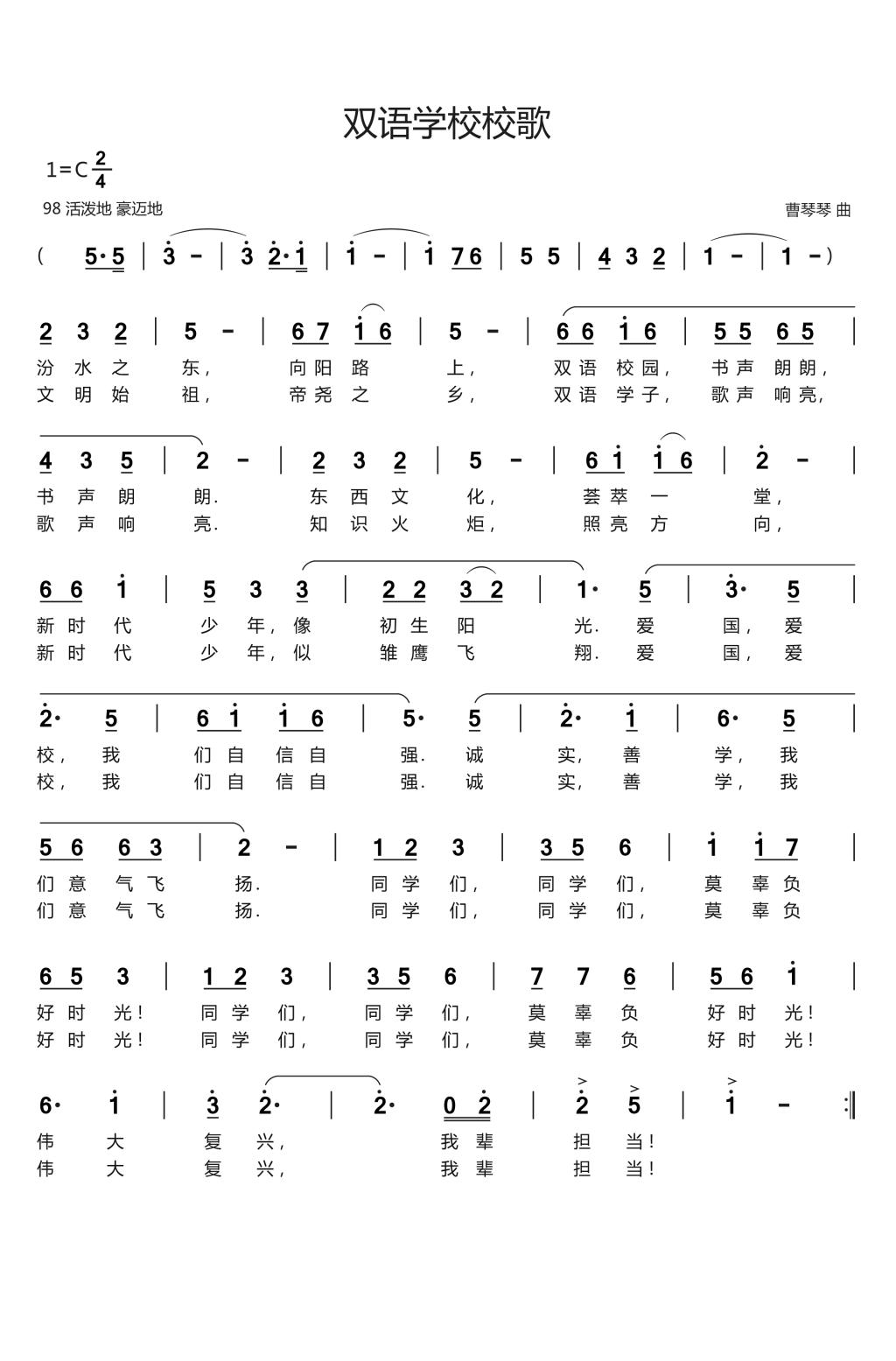 山西省临汾市《双语学校校歌》曹琴琴
